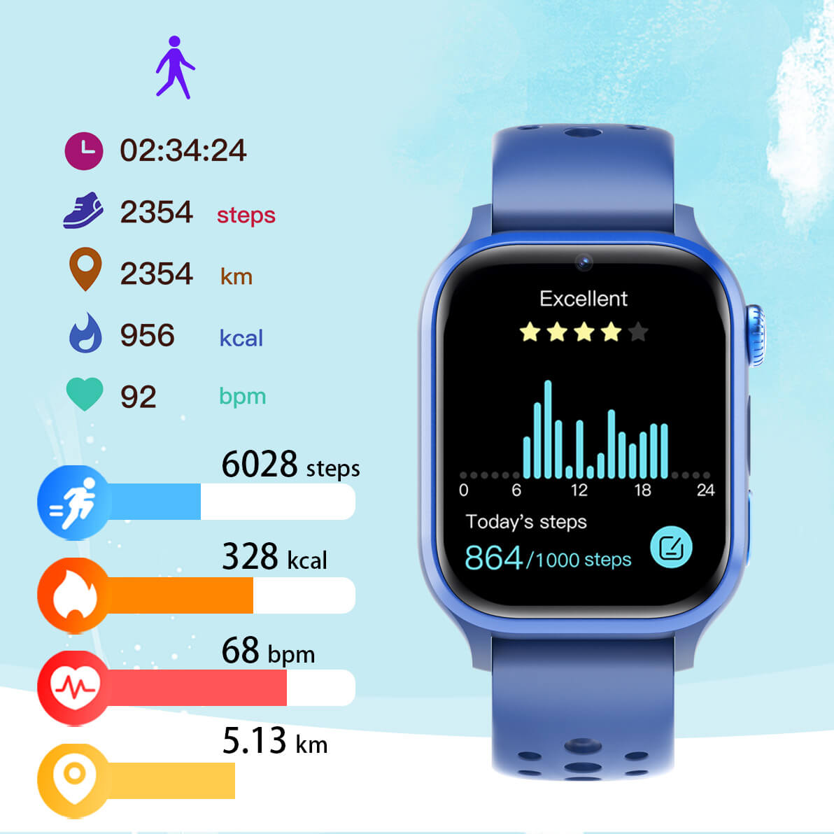Monitorização precisa da frequência cardíaca, oxigénio no sangue e sono, garantindo a saúde da criança
